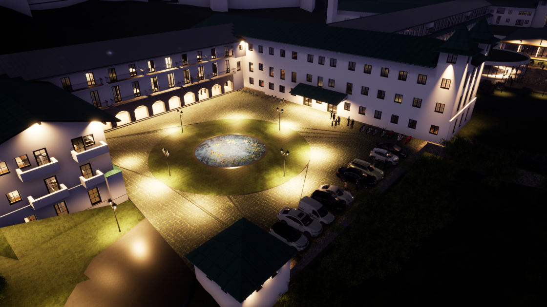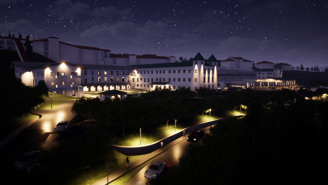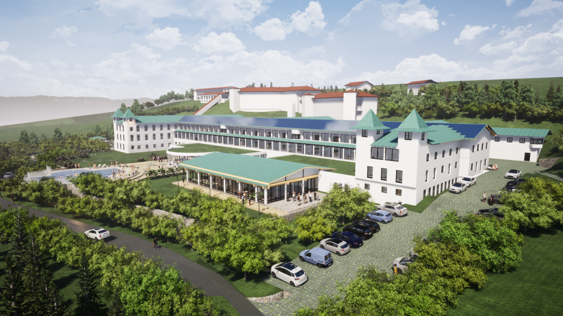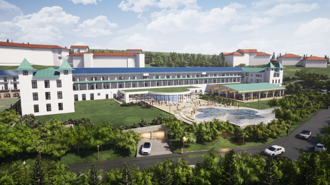 Für dieses Projekt haben wir 2010 das Aufmaß des Gebäudes sowie die Planung des Umbaus und seine Visualisierung übernommen. Das Haus, ein Bau von 1938, wurde lange als Bezirkskrankenhaus und Lazarett betrieben (Architekt: Edgar Berge). 1996 schloss das Krankenhaus, das Bauwerk ist seither ungenutzt. Das großzügige Gebäude weist die typischen Merkmale einer repräsentativen Architektur seiner Zeit auf, etwa ein Schwimmbad, eine Bücherei, Handmalereien und eine aufwändige Eingangshalle, die aus rotem Untersberg-Marmor errichtet wurde. Es passt sich dem regionalen Baustil an und bietet einen beeindruckenden Blick auf das Bergpanorama. Im Januar 2010 interessierte sich ein spanischer Investor und Hotelier für den gesamten Komplex. Die Planung für ein Wellness- und Kurhotel mit 280 Betten, medizinischen Einrichtungen, Läden, einem Friseur sowie Kongress- und Seminarräumen wurde von uns übernommen. Alle neuen Einrichtungen sollten in die sanierte alte Bausubstanz integriert werden.